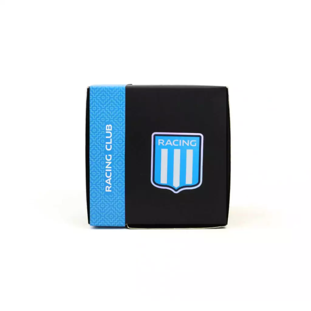 Su tamaño XL, con 12 cm de altura y 10 cm de diámetro, ofrece un volumen ideal para compartir o disfrutar en esos momentos especiales. Además, cuenta con un aro de acero inoxidable grabado que le da un toque premium y auténtico, perfecto para destacar tu orgullo racinguista.