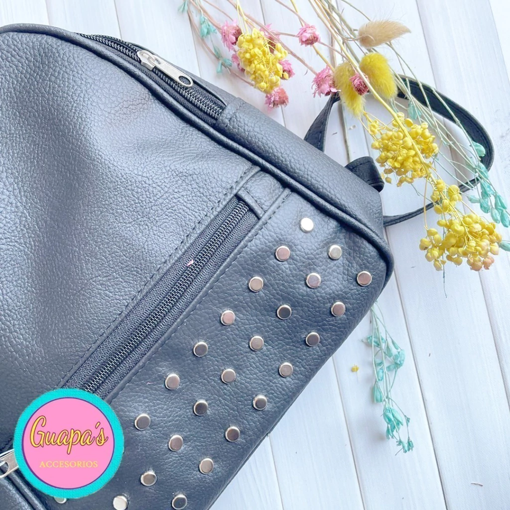 🧱 Material PU (cuerina) ✨ Detalles en tachas 🎒 Compartimiento amplio 🎁 Ideal para regalo